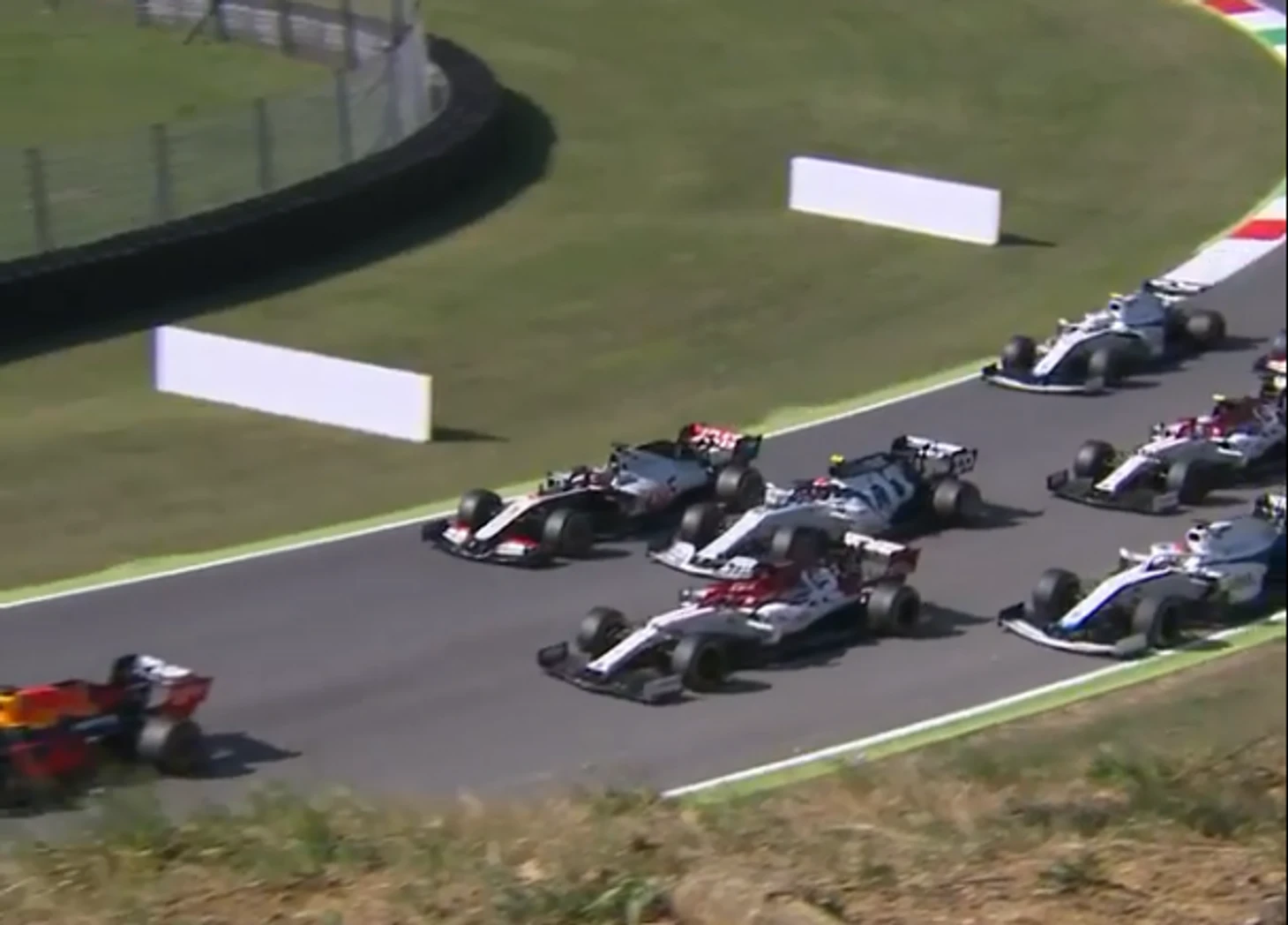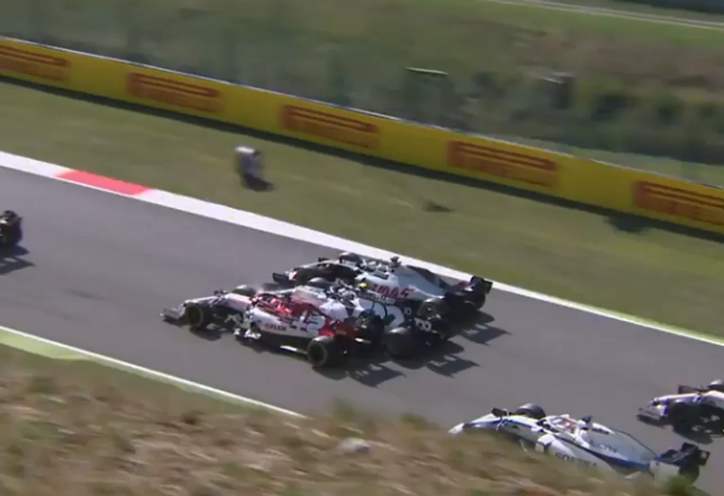 При выезде на прямую «Уильямс» отстал, но Гасли продолжил врываться между «Альфа Ромео» и «Хаасом».
