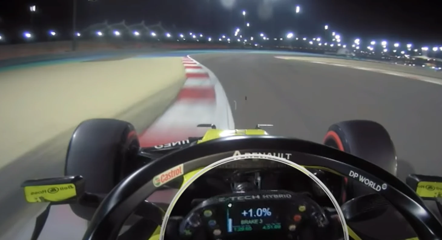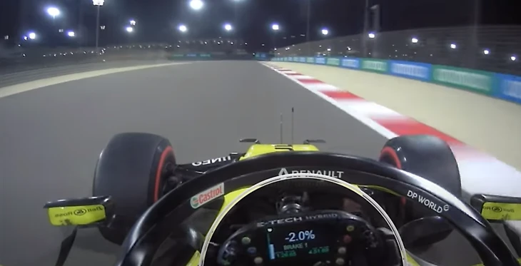 Сразу после восьмого поворота работы у Риккардо становится все больше: теперь он судорожно меняет баланс тормозов на 2 процента назад…
