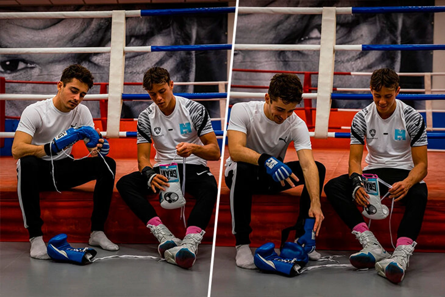 Бокс: необычно видеть Леклера в таких массивных перчатках.