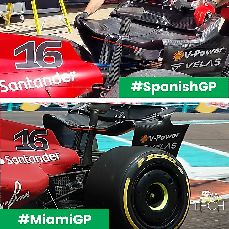 Скудерия все начало чемпионата выжимала максимум из первоначальной версии болида и откладывала доработки ради сохранения гибкости бюджета – и теперь момент настал. В Барселону лидеры обоих зачетов привезли новое днище, заднее антикрыло и набор рассекателей в задней части и на тормозах.
