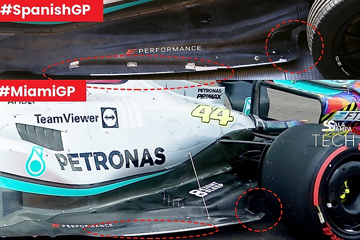 Главные улучшения – переднее антикрыло и днище, и они предназначены прежде всего для улучшения распределения воздушных потоков и нагрузок в задней части (судя по обязательной декларации, поданной в ФИА). Инженеры восьмикратных чемпионов надеются повысить предсказуемость поведения диффузора – то есть хотя бы немного снять эффект подскоков на прямых.