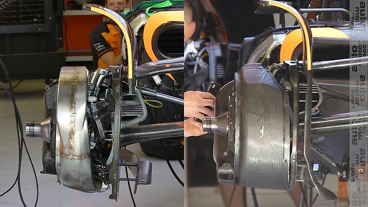 Главным улучшением стал кожух тормозного диска из углеволокна – он сменил временный слишком тяжелый титановый, который инженеры внедрили как быстрый фикс проблемы перегрева со старта сезона.