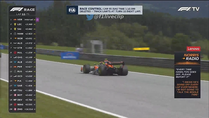 – На 11-м круге Норриса попросили говорить, когда Хэмилтон впереди выезжает за пределы трека. Ответ: «Да он постоянно нарушает границы, я буду постоянно говорить».