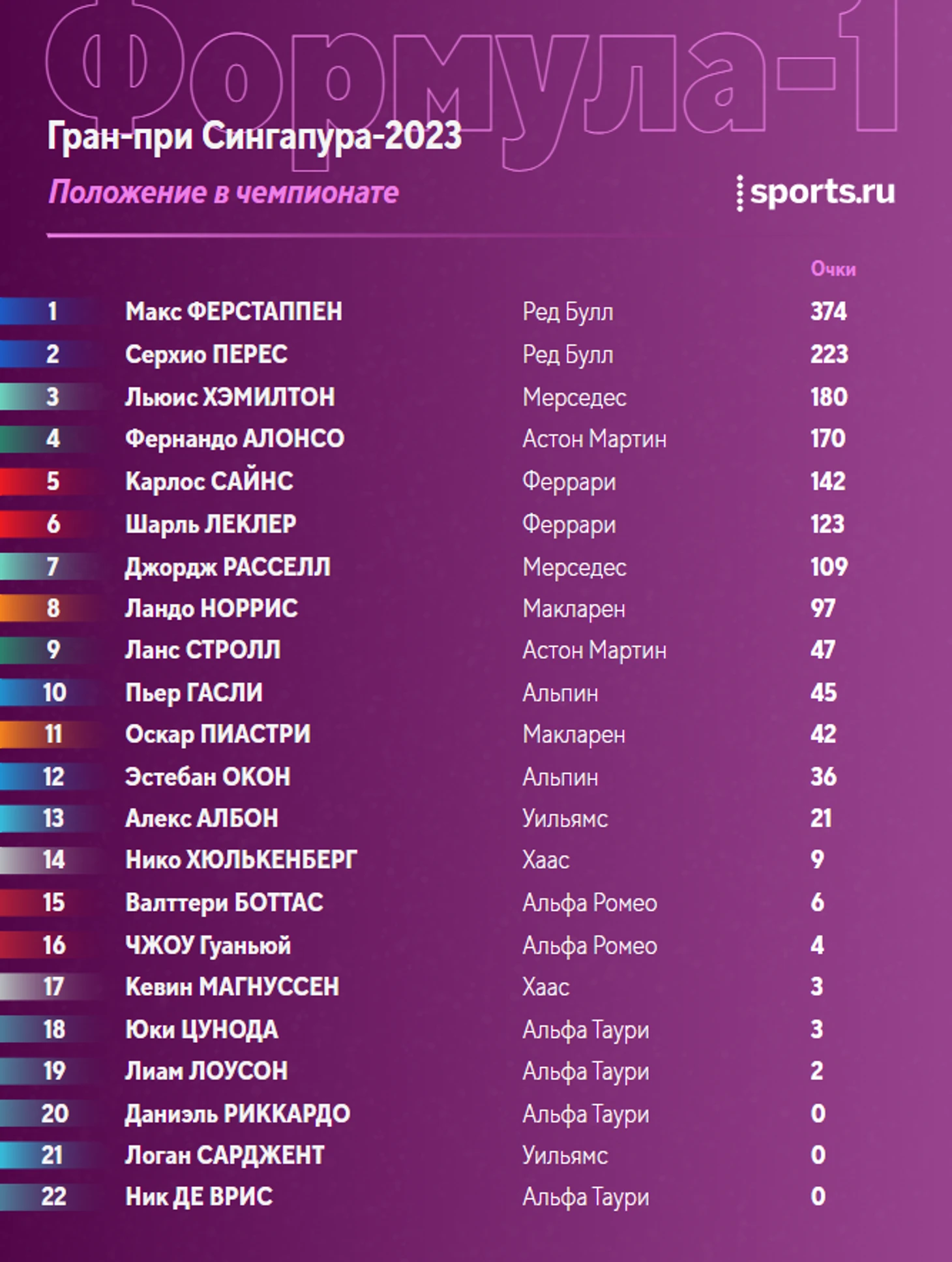 Успехи отдельных пилотов радикально положение у Кубке конструкторов не поменяли – «Альфа Таури» еще очень далеко от других аутсайдеров, «Астон Мартин» теряет последнюю надежду на второе место: