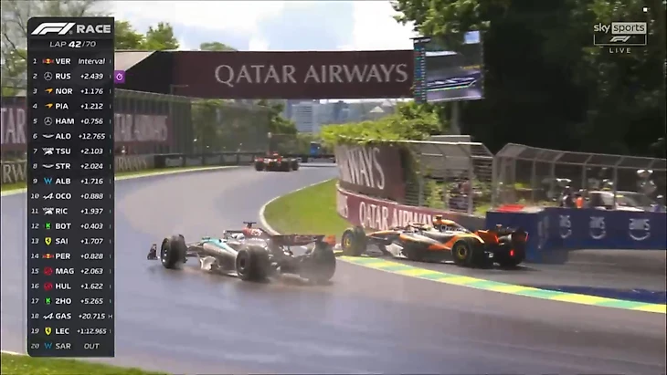 Норрис ошибся на 42-м круге, чуть не вынес Расселла и отвалился к Пиастри.