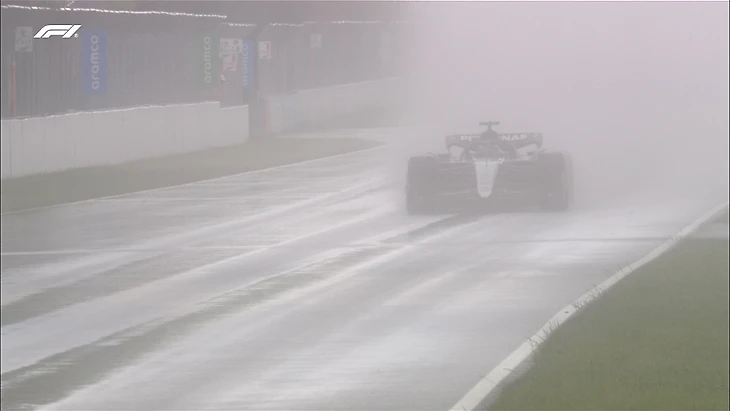 Вероятность дождя перед самым стартом в течение гонки оценивали в 100%. Местами на треке по лужам действительно накрапывало. Тем не менее, именно для старта все, кроме двух «Хаасов», выбрали промежуточные шины вместо полностью дождевых.