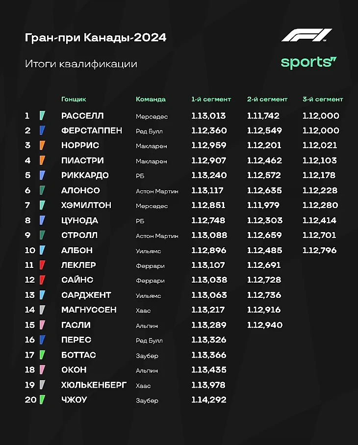 Да, Окон отправился на последнее место из-за штрафа за столкновение с Гасли на Гран-при Монако – ему на следующий этап перенесли наказание в виде потери 5 позиций. А оба «Заубера» после провальной квалификации отправились на пит-лейн: Боттасу заменили батарею, электронику и заднее антикрыло, а Чжоу получил только новую спецификацию заднего антикрыла. Видимо, команда ошиблась с уровнем прижимной силы, от чего и пострадала на длинных канадских прямых в квалификации.