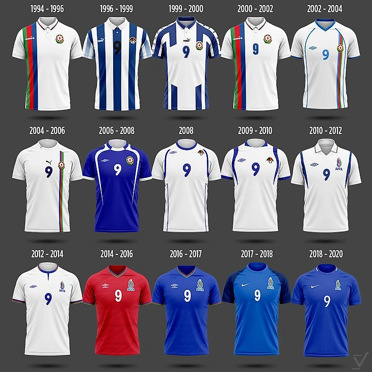 Все футболки сборной Азербайджана с 1994-го года. Какая вам по душе?