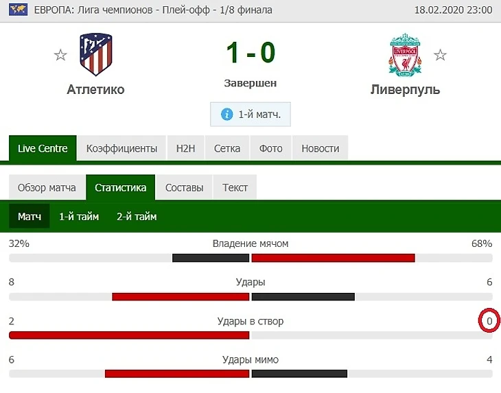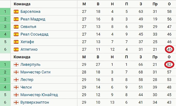 В нынешнем сезоне национального первенства мадридский «Атлетико» ведет отчаянную борьбу за зону Лиги чемпионов, занимая шестую строчку в турнирной таблице чемпионата Испании. Однако, этот факт никак не помешал испанскому середняку раздавить могучий «Ливерпуль» Юргена Клоппа, который лидирует в АПЛ с гигантским 25-очковым отрывом от второго места.