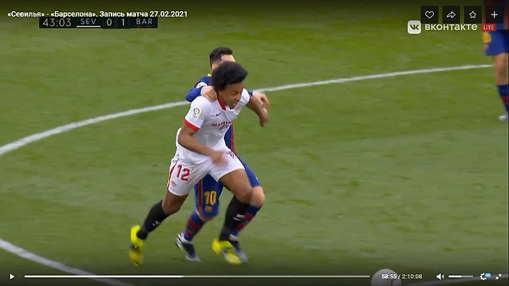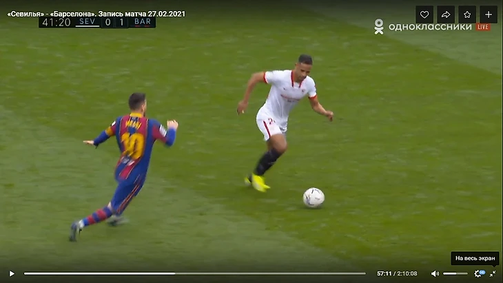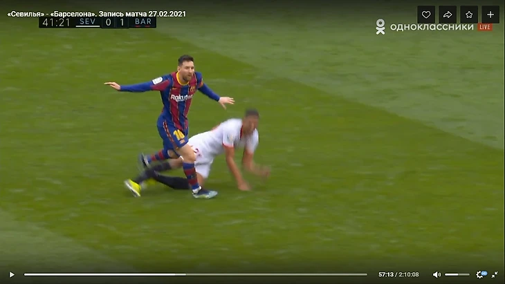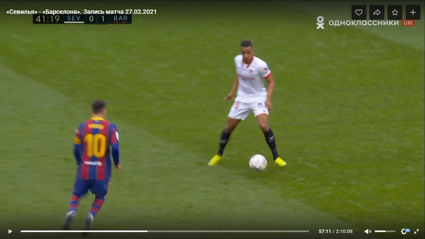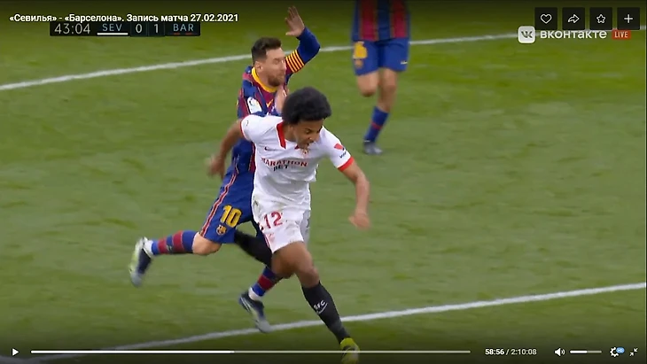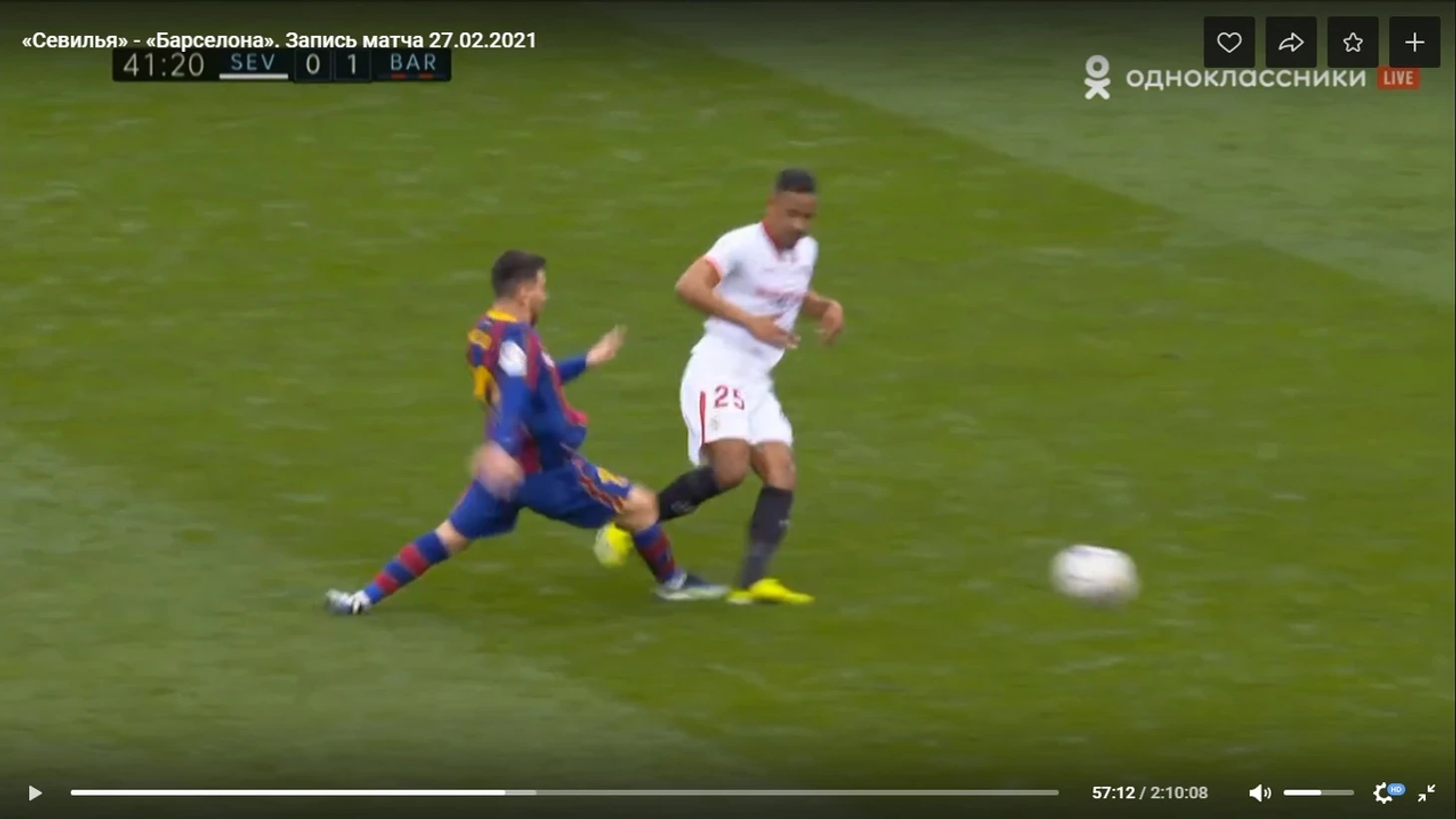 Буквально минуту спустя Месси совершает рывок из линии атаки к центральному кругу и с нарушением правил срывает опасную атаку "Севильи".