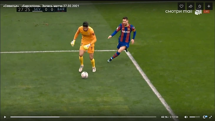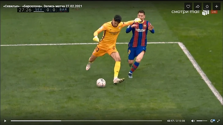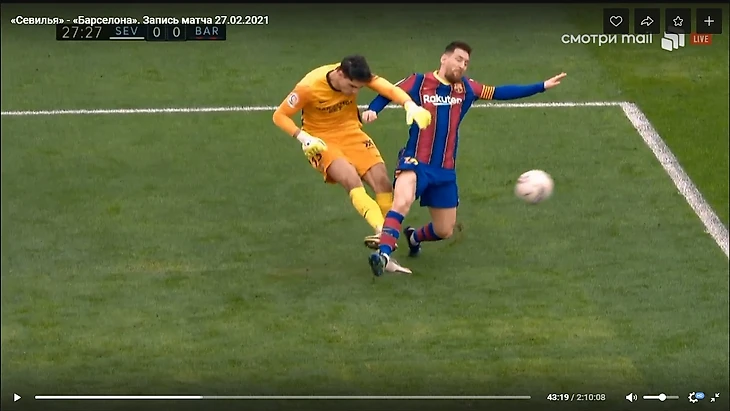Вот один из эпизодов, когда Месси пытается обезмячить вратаря.