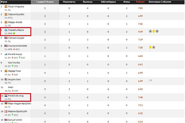 Давайте взглянем на статистику оборонительных действий игроков"Барселоны" в вышеупомянутом матче с "Севильей". Там мы увидим, что Лео Месси был одним из лучших в команде по прессингу.