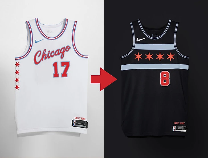 «Буллс» могли бы попасть и в предыдущую категорию, но все же решили не просто сменить белый на черный, а слегка видоизменить макет. И получилось даже хуже – в прошлом году хотя бы была отсылка к форме, в которой дебютировал Майкл Джордан (надпись на груди). В этой, возможно, дебютировал Сан Саныч за команду Куйбышевского политеха. Серьезно, так могла бы выглядеть форма произвольной команды из любого города. Обидно за шестикратных чемпионов НБА.
