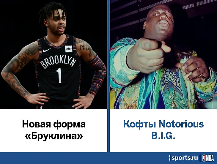 С кем ассоциируется Бруклин? С рэп-иконой Notorious B.I.G., конечно же. С чем ассоциируется Бигги (если оставить только легальные и цензурные вещи)? С шерстяными свитерами бренда Coogi. И «Нетс» смогли отлично внедрить яркие нити любимых кофт Бигги Смоллса в свои «городские» униформы.