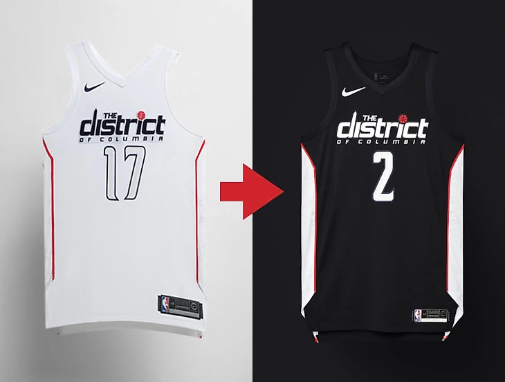 Даже в Nike не слишком заботятся о привлекательности этого комплекта «Уизардс». В прошлогоднем официальном релизе белую форму слишком засветили на фотографиях, в этом году черную форму потеряли на черном фоне. Для красной формы Earned (да, «Вашингтон» в прошлом году играл в плей-офф и заслужил пятую форму) все-таки достали контрастный фон: