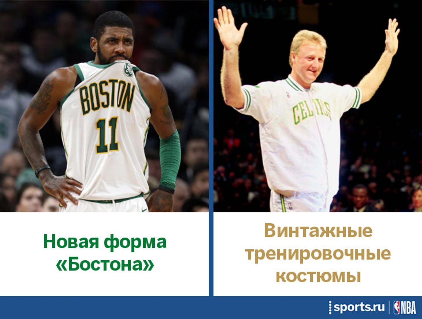 «Бостону» было бы трудно обновить форму, используя старые комплекты – в отличие от других команд, «Селтикс» практически не меняют дизайн с сороковых. В одинаковых майках успели побегать и Расселл, и Берд, и Гершон Ябуселе. И все же «кельты» нашли, что позаимствовать из прошлого – их новая четвертая форма основана на тренировочных куртках, которые также в одном дизайне прошли через десятилетия (иногда были белыми, иногда – зелеными, как та, в которой Лэрри Берд победил на конкурсе трехочковых). Отличительная черта – тонкая желтая обводка вокруг номеров и названия (это первая белая форма «Селтикс», на которой на груди название города, а не надпись «Celtics»).