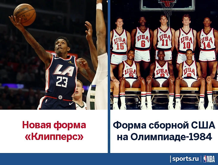 Некоторые копируют не свою форму, а чужую. «Клипперс» опять мучаются в жалких попытках отобрать часть ассоциаций с Лос-Анджелесом у «Лейкерс». В этот раз клуб Стива Балмера обратился к Олимпиаде, проходившей в городе 34 года назад – в том же году «Клипперс» переехали из Сан-Диего в Лос-Анджелес. City Edition ЛАК основан на форме сборной США-1984, за которую свою первую золотую медаль взял Майкл Джордан. Надпись на груди стилизована под логотип ОИ-1984.