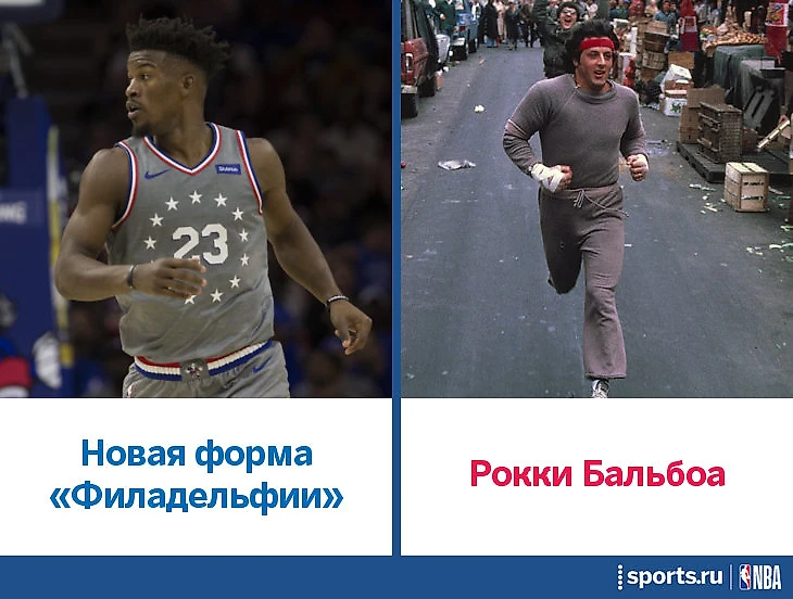 В Филадельфии тоже много культовых музыкантов, но любовь к кинематографу сильнее. Город очень гордится серией фильмов про боксера Рокки Бальбоа (Сильвестр Сталлоне). Напрямую нигде этого не говорится, но форма вдохновлена тренировочным костюмом Рокки из второй части сексталогии. Недавно вышел спинофф-сиквел «Крид 2», и «Сиксерс» тут же вклинились в эту медиаисторию – в большинстве промо-материалов использовалась боксерская тема даже без прямых отсылок ко вселенной «Рокки». В общем-то, такая и цель этого проекта Nike – чтобы форма НБА вызывала ассоциации, даже не объявляя о них вслух.
