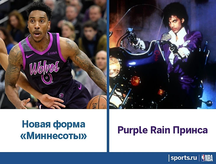 Нет, это не эмо-форма, и прекращайте шутить эту несмешную шутку. Майки «Вулвз» – в память о легенде Миннеаполиса, музыканте Принсе. Кстати, он был большой поклонник баскетбола – играл в школе, построил площадку у себя в особняке рядом со студией звукозаписи, часто появлялся на играх НБА, а для чемпионов женской НБА «Миннесоты Линкс» устроил частный концерт после их титула.