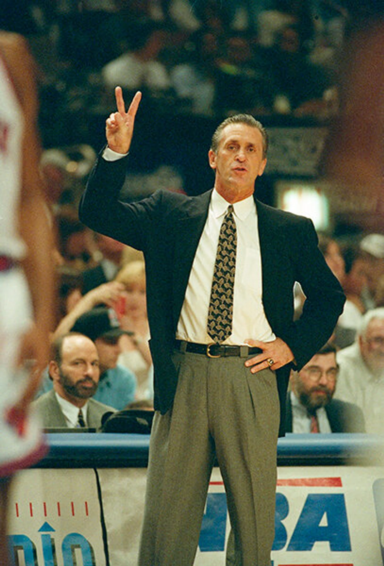Только один тренер доводил до финала НБА три разные команды в трех разных десятилетиях. Уже в «Шоутайме» «Лейкерс» Пэт считался звездой наравне со своими игроками, но в какой-то момент устал от давления... и сменил Лос-Анджелес на Нью-Йорк. Это был стилевой переход: после лучшей атаки 80-х в ЛАЛ Райли строил лучшую защиту 90-х в «Никс». Но вскоре Пэт вновь захотел большего: полного контроля над командой, и скандально ушел в «Майами» на двойную роль тренера и президента. Опять устал тренировать, назначил главным своего помощника, разочаровался в нем, вернулся на тренерский мостик, сделал «Хит» чемпионами в 2006-м. А потом опять ушел в менеджмент, в этот раз подобрав лучшего наследника (который и сам пробился в топ-15).