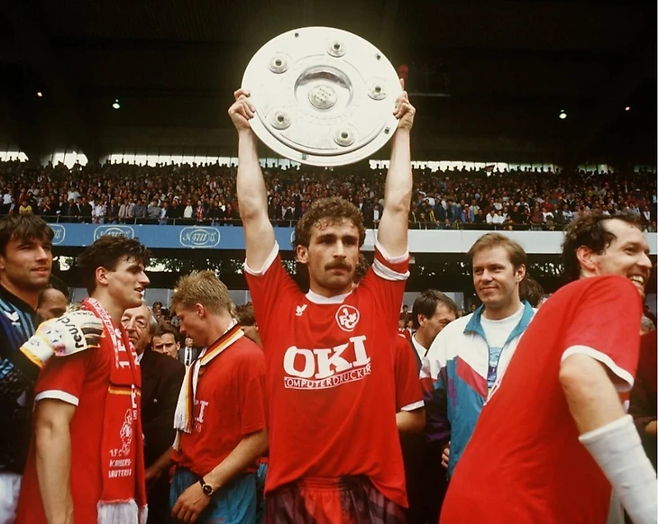 Так было до сезона 1990/91, когда они заняли 12-е место (а также триумф в Кубке Германии) под руководством Карла-Хайнца Фельдкампа и завоевали свой первый чемпионский титул с 50-х годов. Команда, состоявшая из Штефана Кунца и Бруно Лаббадиа в нападении и с Томасом Дули в защите, возглавила таблицу с 22-го тура, оторвавшись от «Баварии». Обеспечила победу со счетом 6:2 в Кёльне, в последний день вырвавшись на три очка вперёд, и завоевала титул. В результате Кунц стал единственным игроком «Кайзерслаутерна», которого когда-либо называли футболистом года в Германии.