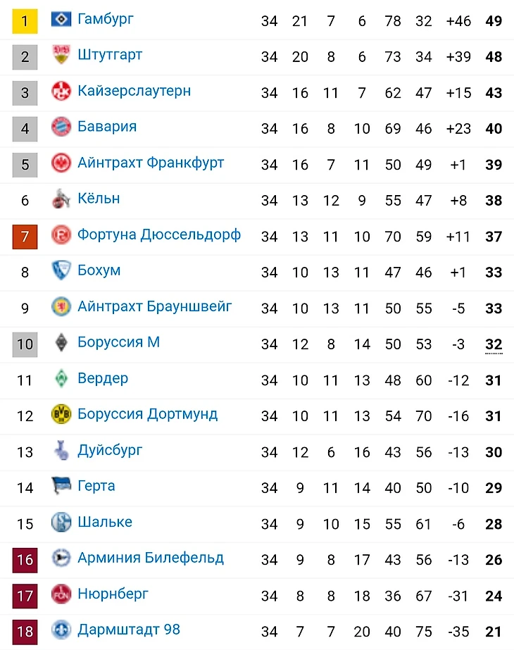 Они были подтверждены как чемпионы с оставшейся игрой и финишировали на одно очко выше «Штутгарта», обогнав предыдущих лидеров «Кайзерслаутерна» в 27-м туре. «Штутгарт» тогда набрал 48 очков, а «Гамбург» 49 очков.