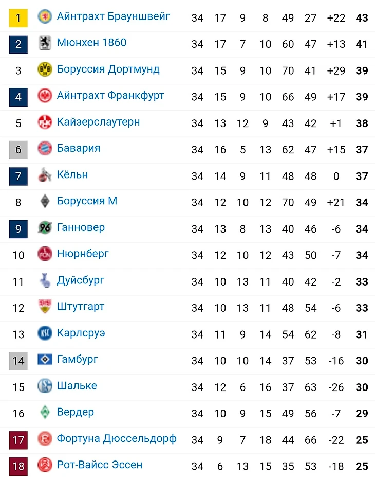 Они даже проиграли свой первый матч «Кайзерслаутерну», но вскоре закрепились в верхней части турнирной таблицы. А когда в 17-м туре они опередили «Кёльн», то догнать их было уже невозможно.