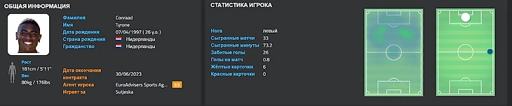 Нападающий Сутьески голландец Тайрон Конрад был признан лучшим футболистом Meridianbet I CFL в традиционном отборе Союза профессиональных футболистов Черногории.