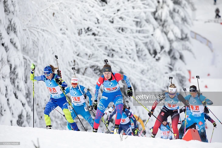 В смешанной эстафете лучший результат, как и в случае с одиночным микстом, случился в Оберхофе - 4-е место. Динара Алимбекова выступала в той гонке на первом этапе и в её пассиве штрафной круг при стрельбе из положения лёжа. Зато Елена Кручинкина, которая тогда бежала на втором этапе ни разу не промахнулась, у наших мужчин, которые принимали участие в той гонке, а именно, у Бочарникова и Смольского по одному промаху. Позиция на финише - 4-ая. В той гонке многие неплохо стреляли, по 5 дополнительных патронов ещё у 4-ых команд.