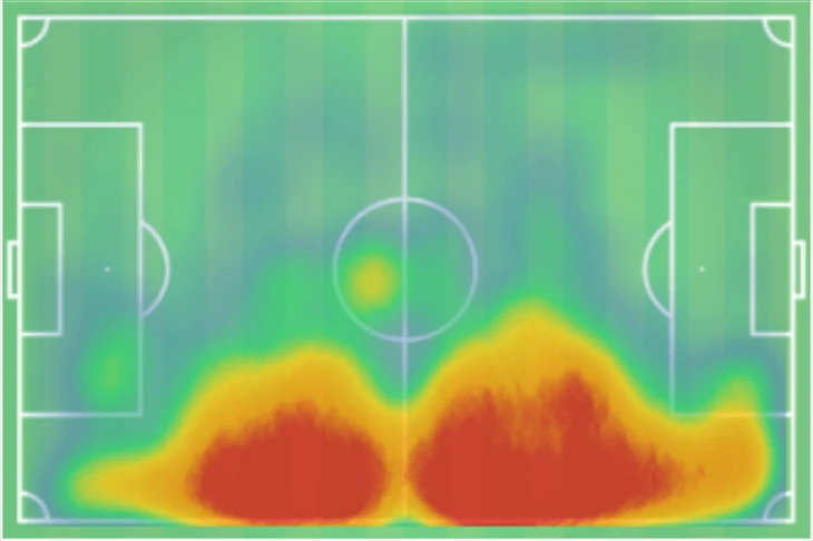 2. Тепловая карта Киммиха в сезоне 2018/19 довольно типична для современного крайнего защитника в топ-клубе, где много владеют мячом и доминируют в большинстве матчей. Основной задачей крайнего защитника в этом случае становится растягивание соперника и постоянное подключение к атакам. В сезоне 2018/19 Киммих стал единственным игроком «Баварии», который провел все матчи от звонка до звонка. В 29 из 34 матчей он играл правого защитника, а в оставшихся пяти занимал место в центре поля (в это время, на правом фланге его подменял Рафинья).