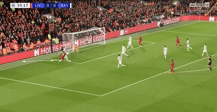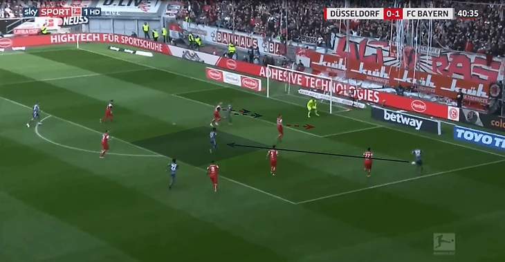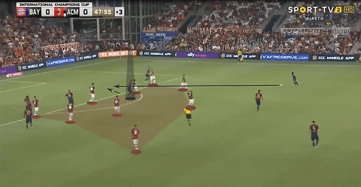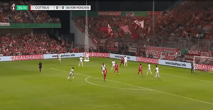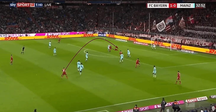 Киммих получает мяч на правом фланге, и вместо очевидного прострела на ближнюю штангу (куда набегает Левандовски, а так же два защитника) он пасует на набегающего Кингсли Комана. Итог: «Бавария» забивает второй гол.