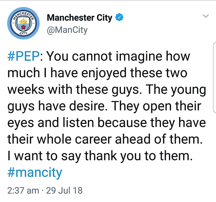 Его словам на пресс-конференции в Мичигане предшествовали пораженческие прогнозы, высказанные неделей ранее. Согласно им, МЮ испытает трудности с тем, чтобы обыграть Лестер и Брайтон в двух стартовых матчах АПЛ, поскольку у его игроков была слишком короткая предсезонка. При этом тот факт, что Лестер будет серьёзно ослаблен переходом своего лучшего игрока, Рияда Мареза, в стан Сити, был тактично опущен.