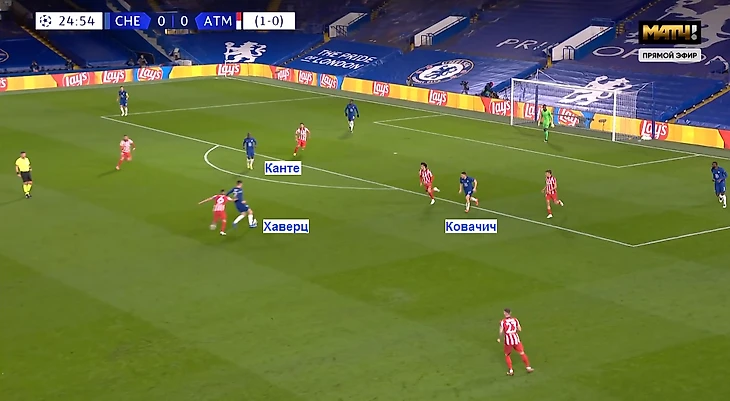 В эпизоде с первым голом быстро сработал Хаверц (хотя по ходу матча часто терял мяч из-за медленных решений). Во втором мяче Канте идеально стянул защиту «Атлетико». Думаю, это неплохой мостик к разговору о других личных перфомансах.