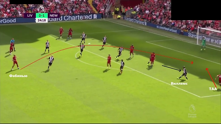 Фулбэки традиционно играли колоссальную роль при развитии атак «Ливерпуля» (особенно в течение стартовой половины матча). Футболисты атакующей группы старались максимально «сузить» защитную линию «Ньюкасла», чтобы позволить крайнему защитнику открыться под заброс на фланге. Эта схема периодически работала на обоих краях: