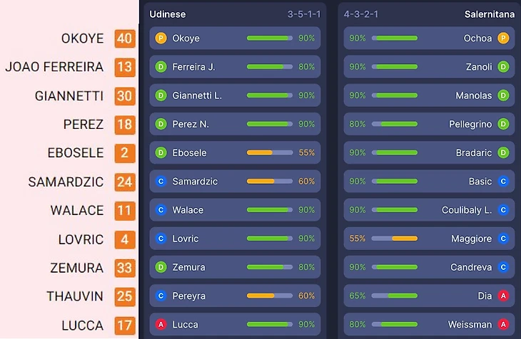 Топ-игроки и джокеры: Удинезе (vs Салернитана)
