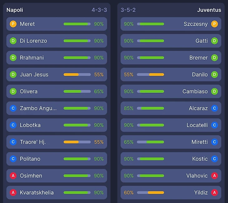 Обе команды выиграли последние матчи. Но разница огромна - «зебры» вымучили победу у «Фрозиноне» (3:2), а «Наполи» уничтожили «Сассуоло» (6:1). Впрочем, это не даёт права называть хозяев фаворитами встречи - по уровню составы примерно равны. Замечу, что обе команды в последнее время никак не могут уйти с поля без пропущенного гола, поэтому в этом матче я бы делал упор на атаку - Осимхен, Хвича и Влахович не только наиболее популярные варианты, но ещё и забивающие много голов.