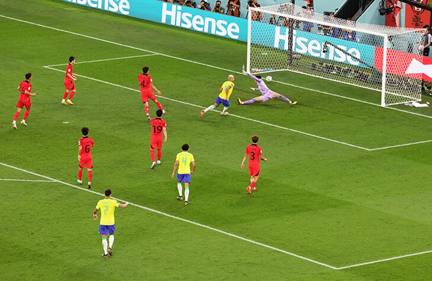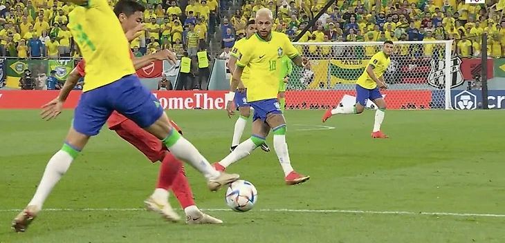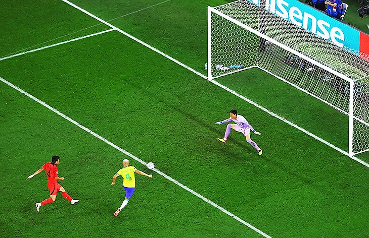 1. На 13-й минуте корейцы под прессингом выбирались из своей штрафной, оставался последний штрих – вынести мяч подальше. Но когда он дошел до Ким Сын Гю, его из-за спины реактивно накрыл Ришарлисон. И защитник вместо мяча зарядил ему по ноге. Пенальти, 2:0.