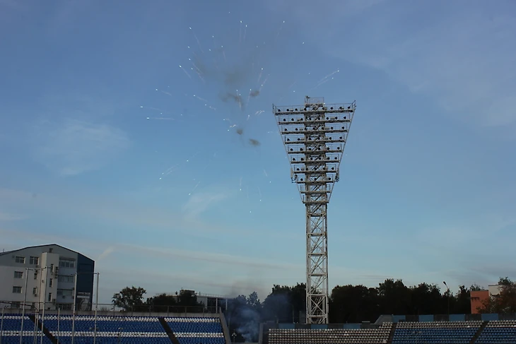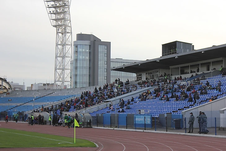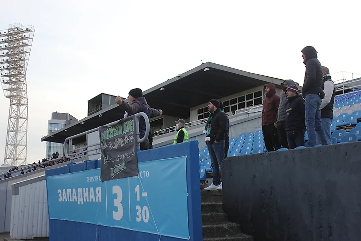 Основная часть болельщиков расположилась там же, где и мы — на центральной трибуне. Для соблюдения санитарных норм некоторые ряды были закрыты лентой, дабы не создавать плотную толпу. На фанатском секторе болельщиков было немного, зато они были самыми громкими и заряжающими — мое почтение.