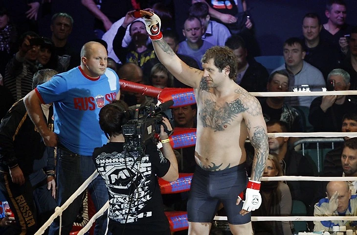 АЛЕКСАНДР: «Кто-то говорит, что самый тяжелый бой был у меня с Крокопом. Я вообще с ним не должен был драться. Это было начало моей карьеры, не было опыта, ничего вообще. Организаторы «Прайда» хотели Мирко вывести под Федю. Начали запугивать, что если он с ним не подерется, то заберут пояс.