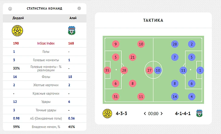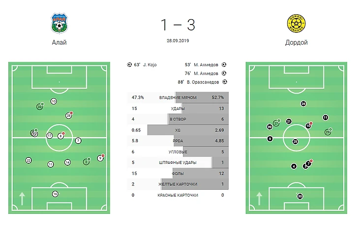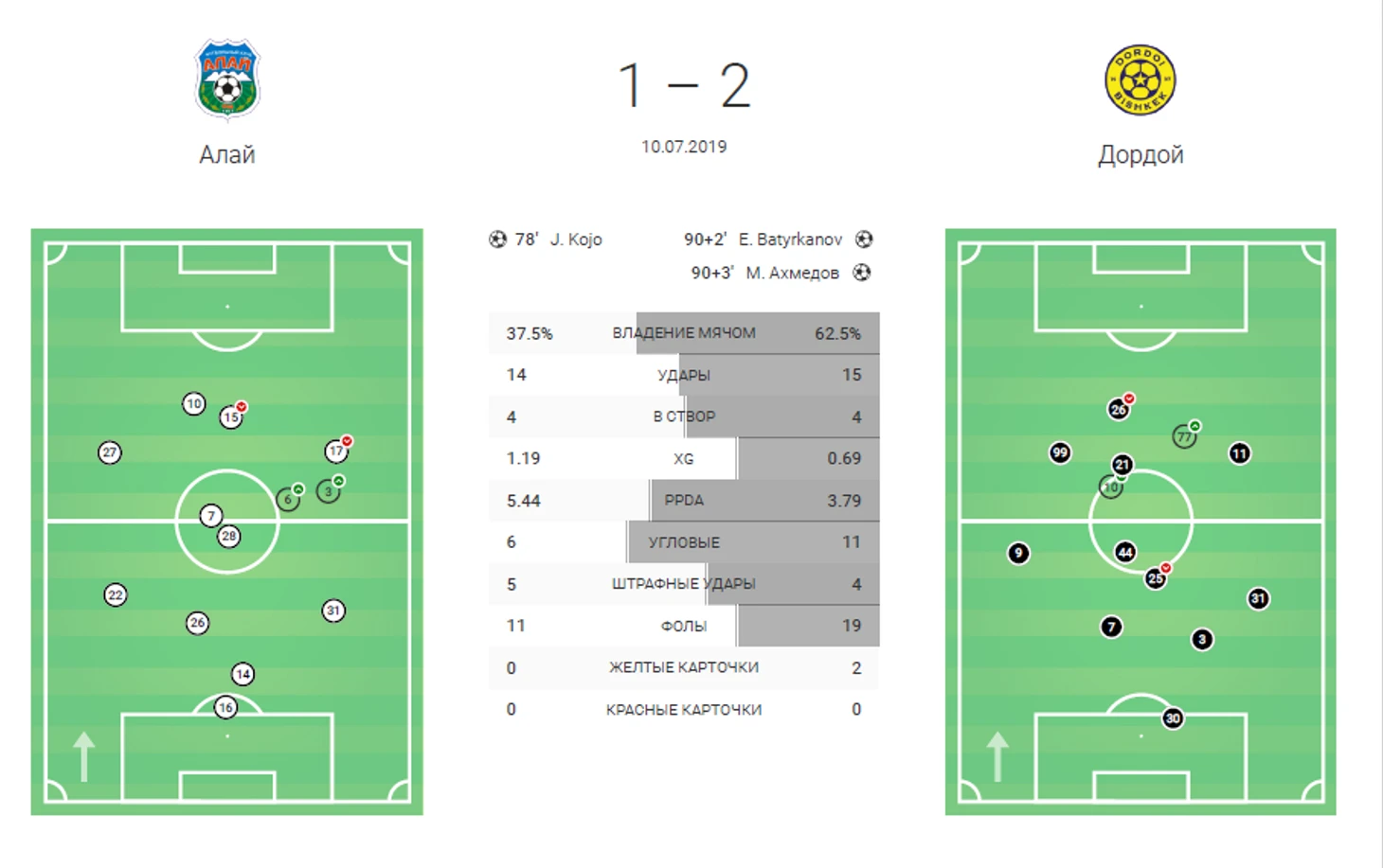 «Дордой»: Матяш П., Акматов А., Юсупов М., Байматов А. (Откеев А. 26), Сагынбаев Б., Ахмедов М. (Сардарбеков 89), Жыргалбек уулу К., Мусабеков Ф., Узденов М., Оразсахедов В., Мурзаев М.