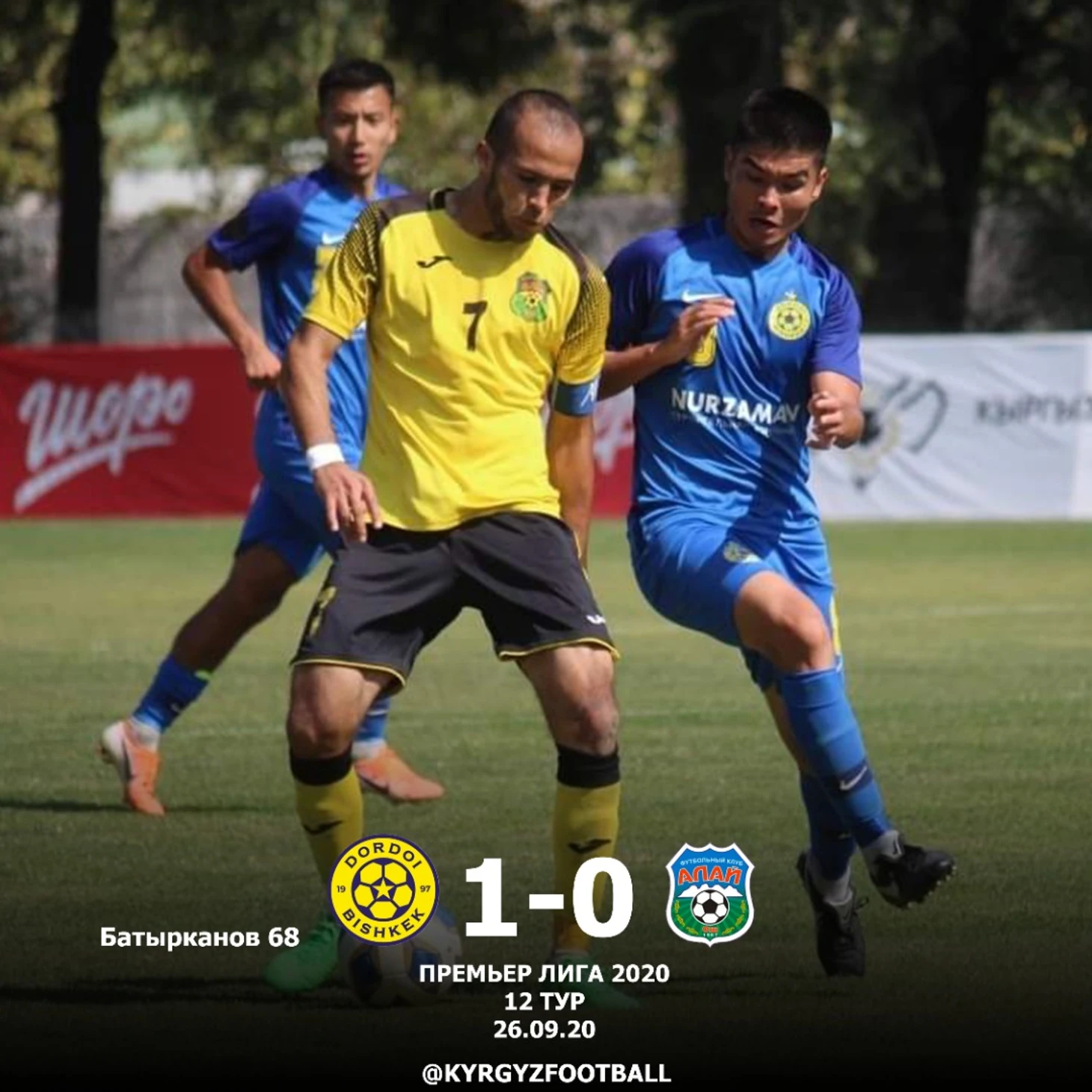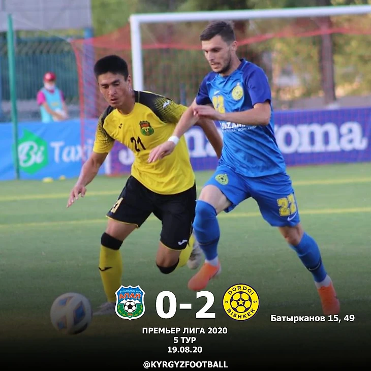 «Алай» который «пошумел» во время карантина, кажется хуже всех был готов к возобновлению чемпионата после долгой паузы, катастрофический старт был подтверждением внутренних проблем клуба. К пятому туру команды подходили в совершенно разной форме: у «Алая» 1 победа; 1 ничья и 2 поражения, «Дордой» имел в активе 3 победы и 1 ничью. Но на этот матч «Алай» настроился по-особенному, игра команды выглядела намного лучше прежнего, но пропустила первой, на 23 минута Кожо имел отличную возможность сравнять счет, но Токотаев взял пенальти ганца. В начале второго тайма Батырканов оформил дубль и установил окончательный счет.