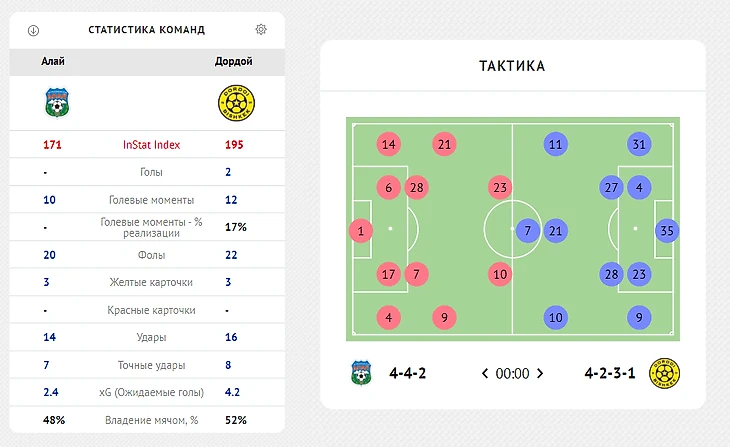 Голы: Вликаев 20, Батырканов 76 – Ахматалиев 52