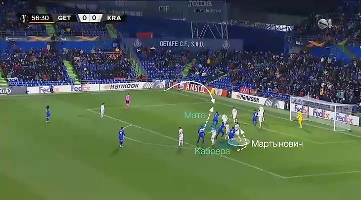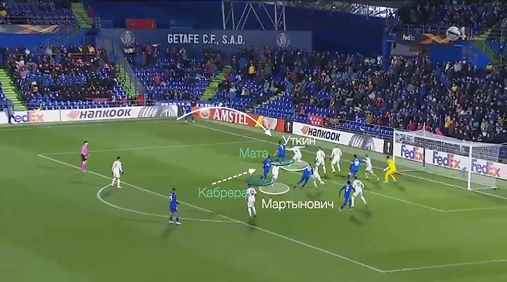 В первом случае Игнатьев успел опередить на ближней штанге Мату. Мартынович упускал Кабреру.