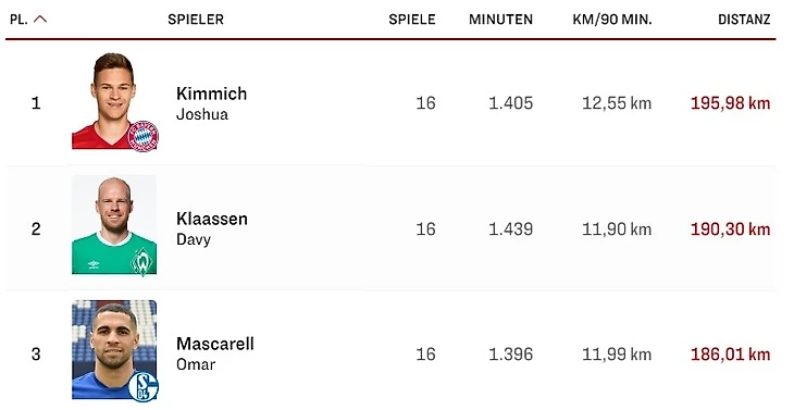 *игрок – кол-во игр – кол-во минут – в среднем км за 90 мин – всего км