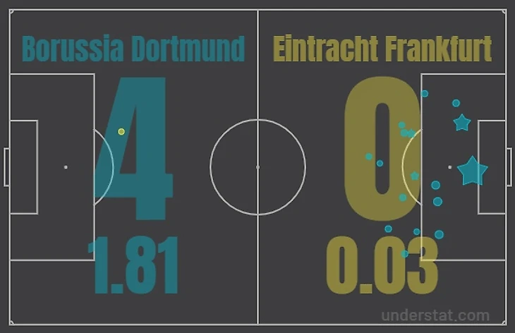 Во второй же половине все пошло гораздо веселее. После перерыва Дортмунд разошелся, а вот «орлы», наоборот, только сильнее поникли. Если в первом тайме еще можно было вспомнить какие-то попытки «Айнтрахта» в прессинге и атаке, то дальше все уныние их игры отражалось на лице главного тренера Ади Хюттера, который хоть и делал более замены, призванные усилить атаку, никак помочь они не смогли.