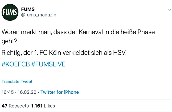 Как можно заметить, что карнавал в Кельне во всем разгаре ? Правильно, «Кельн» наряжается «Гамбургом».
