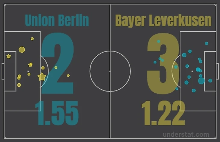 «Байер» и дальше продолжал испытывать проблемы с подходами к воротам «Униона», теряя иногда мяч в очень неподходящий момент, ноо все-таки к середине тайма гостям удалось не пропустить еще. И даже провести самим неплохую атаку, причем сразу же ее реализовать: Та длинным забросом со своей половины отправил мяч на чужую, где за него зацепился один из Бендеров и скинул мяч готовому к завершению Хавертцу.