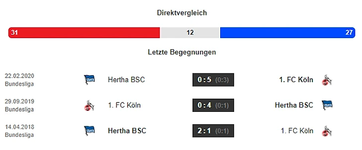 За год до этого "Герта" также победила "Кёльн" в гостях (2:0)