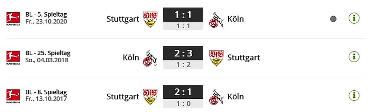 «Штутгарт» не проиграл в Кельне последние десять матчей (пять побед, пять ничьих). «Козлы» одержал свою последнюю домашнюю победу над швабами более 20 лет назад (3:2 в 2000 году).