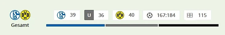 В Бундеслиге рурское дерби сыграно 97 раз. «Боруссия» в противостоянии впереди с 35 победами. У «Шальке» 32 победы.